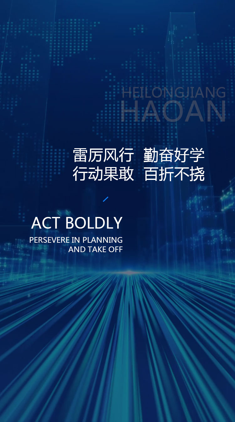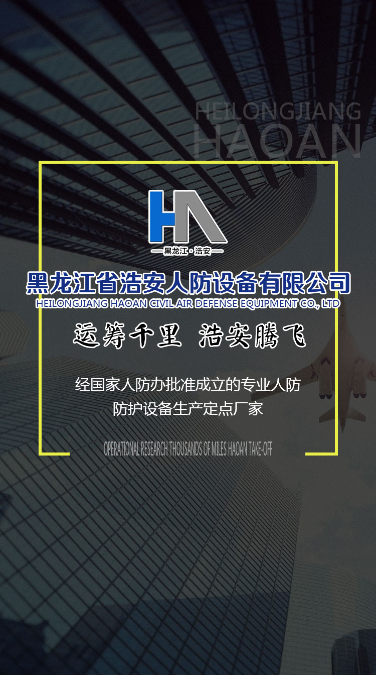 經濟實力雄厚、專業技術精良、生產檢測設備齊全,浩安人本著“為企業盡心,讓用戶放心” 的經營宗旨,秉承“行動果敢,百折不撓,運籌千里,浩安騰飛”的企業理念,力求在黑龍江省打造 新的戰略區域,開拓新的人防市場。 公司熱忱希望能與社會各界新老朋友在廣泛領域內開展合作,互助互利、合作共贏,以極大地熱 忱為廣大用戶提供優質產品和滿意服務!浩安愿與您攜手開啟嶄新征程.共創美好明天!